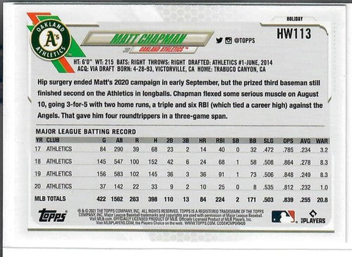2021 Topps Holiday Mega Box Metallic #HW113 Matt Chapman NM-MT Athletics