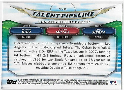 2018 Bowman Talent Pipeline #TP-LAD Yaisel Sierra/Johan Mieses/Keibert Ruiz NM-M