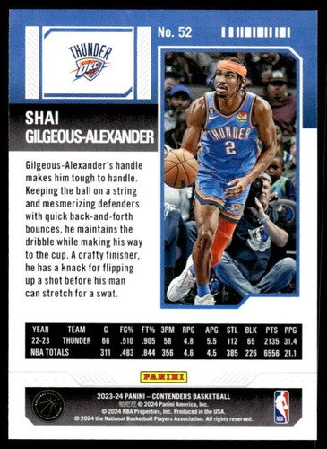 2023-24 Panini Contenders Season Ticket Retail #52 Shai Gilgeous-Alexan ID:74218