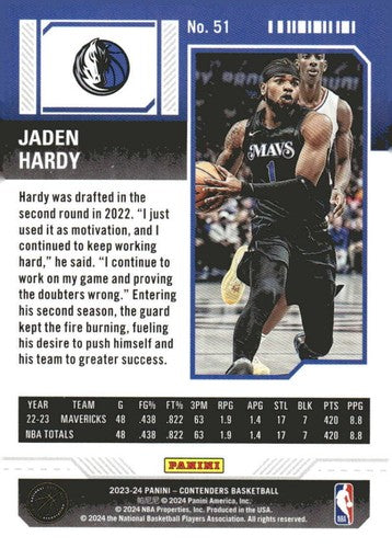 2023-24 Panini Contenders Season Ticket Retail #51 Jaden Hardy NM-MT Ma ID:74217