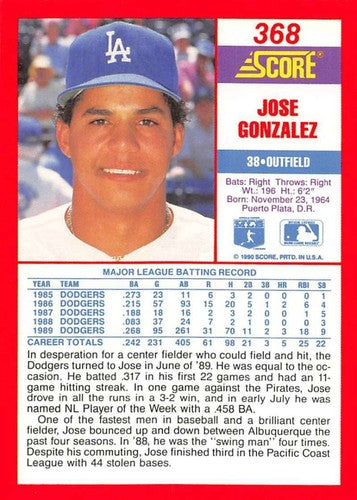 1990 Score #368 Jose Gonzalez NM-MT Dodgers