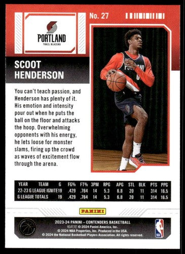 2023-24 Panini Contenders Season Ticket Retail #27 Scoot Henderson NM-M ID:74203