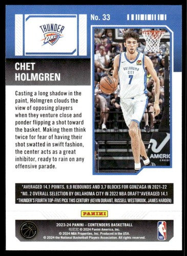 2023-24 Panini Contenders Season Ticket Retail #33 Chet Holmgren NM-MT ID:74206