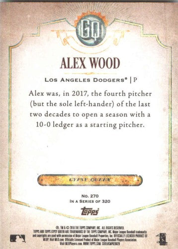 2018 Topps Gypsy Queen #270 Alex Wood NM-MT Dodgers