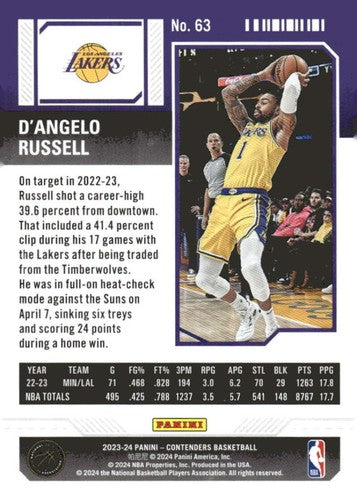 2023-24 Panini Contenders Season Ticket Retail #63 D'Angelo Russell NM- ID:74225