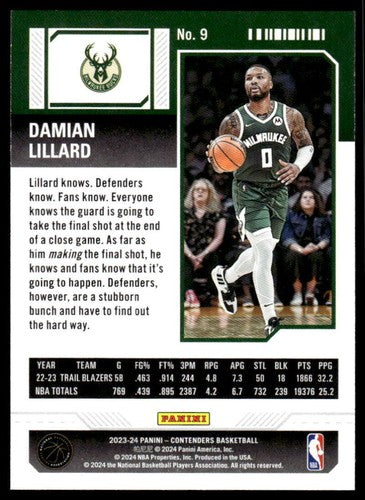 2023-24 Panini Contenders Season Ticket Retail #9 Damian Lillard NM-MT ID:74189