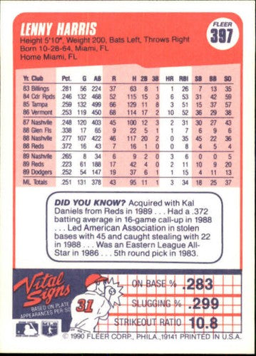 1990 Fleer #397 Lenny Harris NM-MT Dodgers