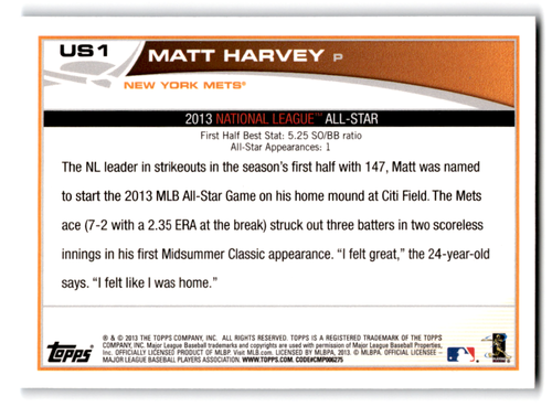 2013 Topps Update Wal-Mart Blue Border #US1 Matt Harvey NM-MT Mets ID:70758
