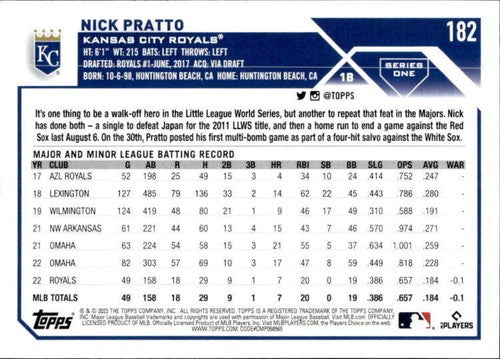 2023 Topps #182 Nick Pratto NM-MT RC Rookie Royals ID:49765