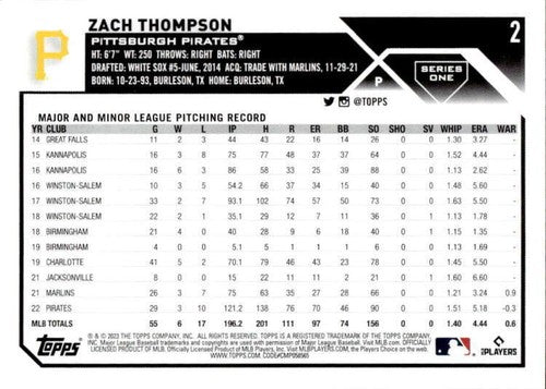 2023 Topps #2 Zach Thompson NM-MT Pirates ID:49626