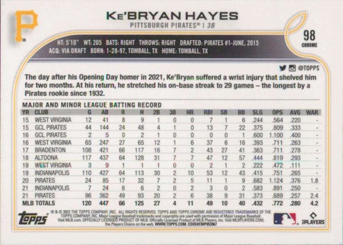 2022 Topps Chrome #98 Ke'Bryan Hayes NM-MT Pirates ID:51632