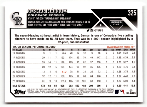 2023 Topps #325 German Marquez NM-MT Rockies ID:49587