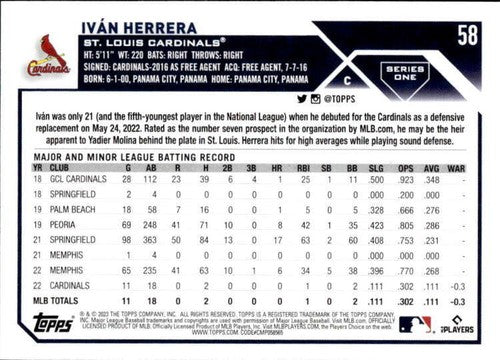 2023 Topps #58 Ivan Herrera NM-MT RC Rookie Cardinals ID:49547