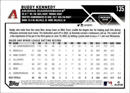 2023 Topps #135 Buddy Kennedy NM-MT RC Rookie Diamondbacks ID:49549