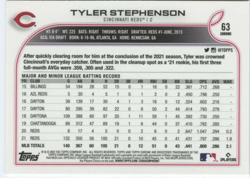 2022 Topps Chrome #63 Tyler Stephenson NM-MT Reds ID:51613