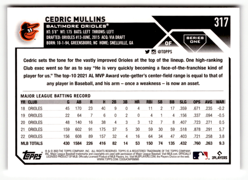 2023 Topps #317 Cedric Mullins NM Near Mint Orioles ID:49749