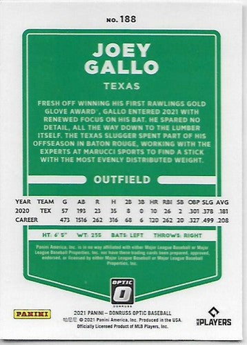 2021 Donruss Optic #188 Joey Gallo NM-MT Rangers