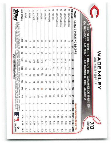 2022 Topps #203 Wade Miley NM-MT Reds ID:41014