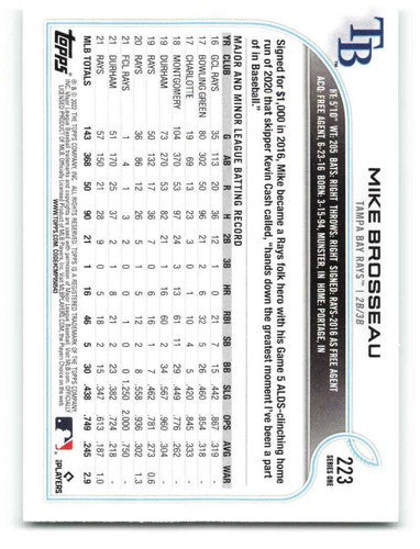 2022 Topps #223 Mike Brosseau NM-MT Rays ID:41028