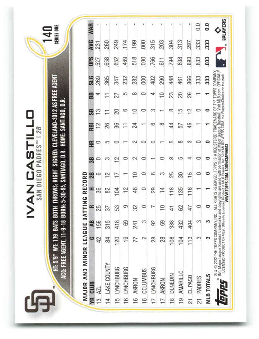 2022 Topps #140 Ivan Castillo NM-MT RC Rookie Padres ID:40961