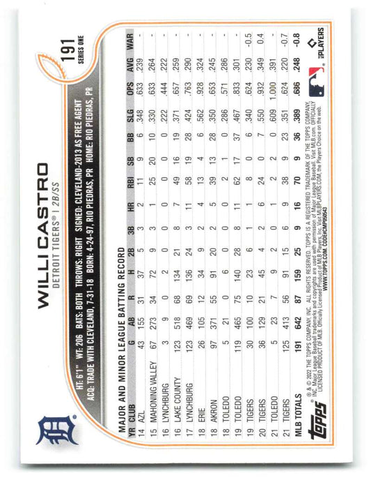 2022 Topps #191 Willi Castro NM-MT Tigers ID:41003