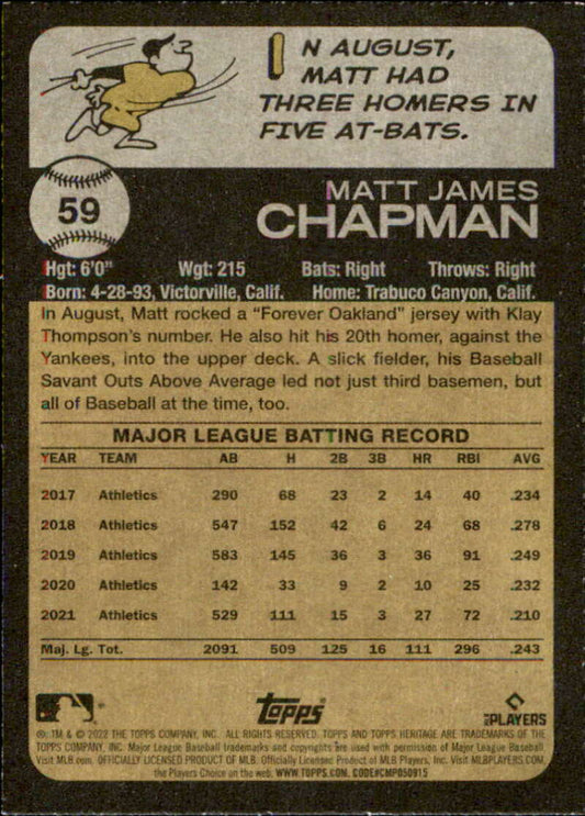 2022 Topps Heritage #59 Matt Chapman NM-MT Athletics ID:41205