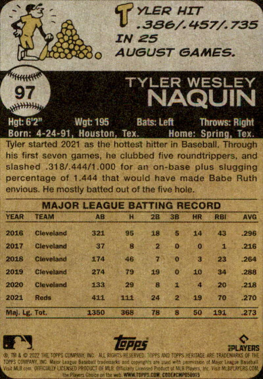 2022 Topps Heritage #97 Tyler Naquin NM-MT Reds ID:41231