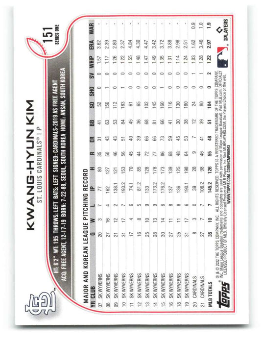 2022 Topps #151 Kwang-Hyun Kim NM-MT Cardinals ID:40973