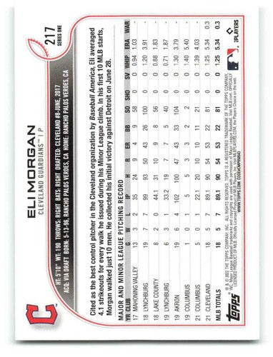 2022 Topps #217 Eli Morgan NM-MT RC Rookie Guardians ID:41025
