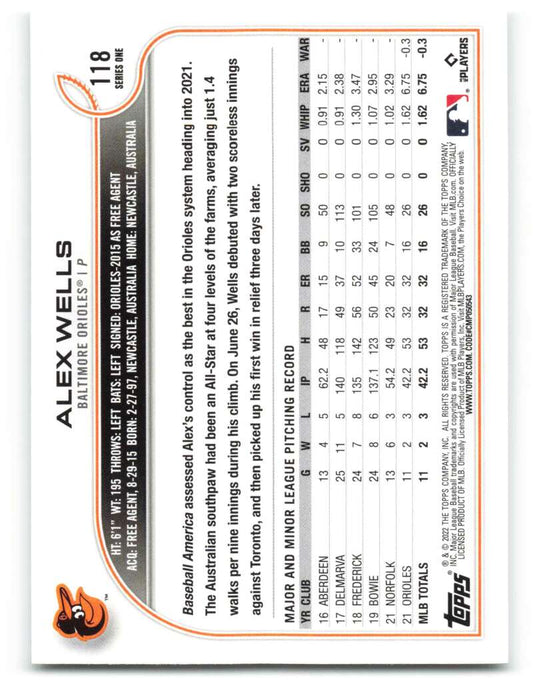 2022 Topps #118 Alex Wells NM-MT RC Rookie Orioles ID:40949