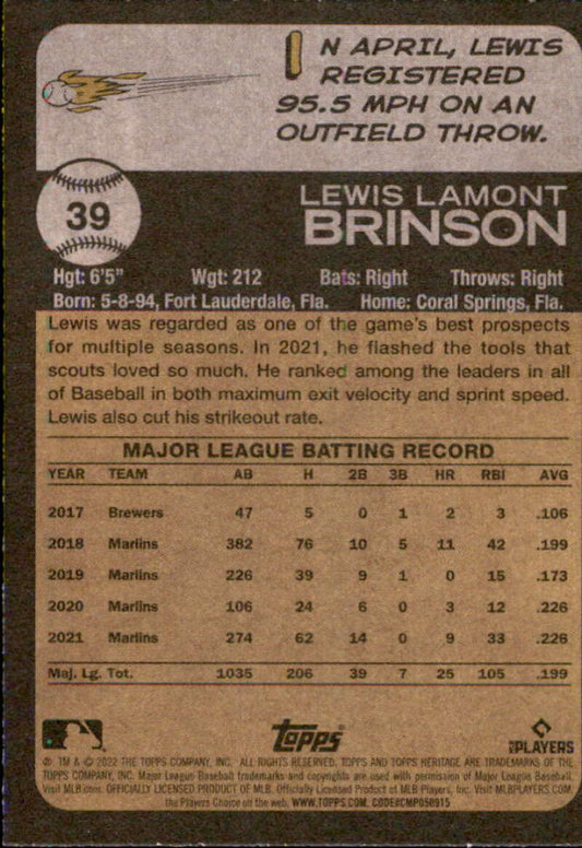 2022 Topps Heritage #39 Lewis Brinson NM-MT Marlins ID:41189