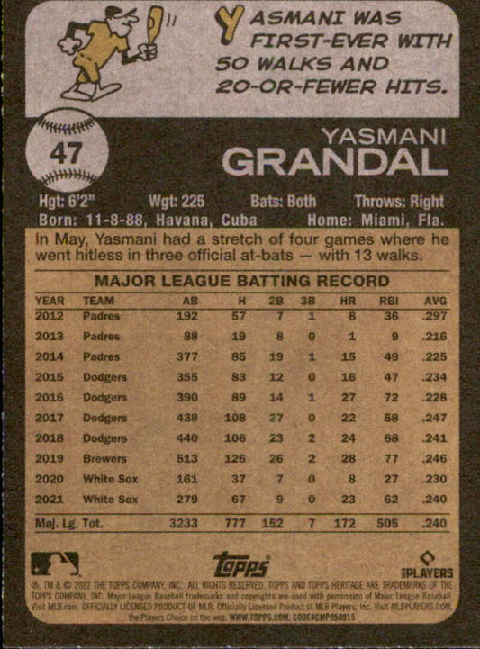 2022 Topps Heritage #47 Yasmani Grandal NM-MT White Sox ID:41197