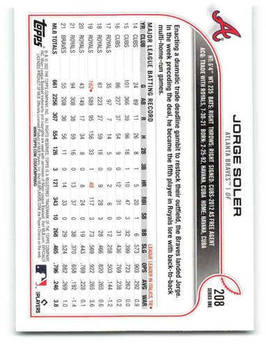 2022 Topps #208 Jorge Soler NM-MT Braves ID:41017