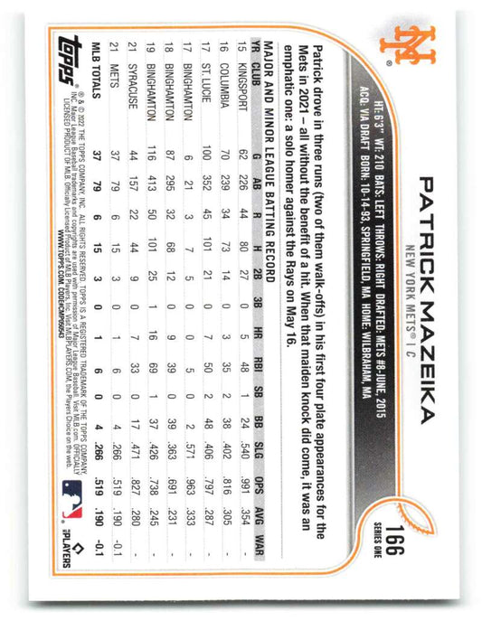 2022 Topps #166 Patrick Mazeika NM-MT RC Rookie Mets ID:40980