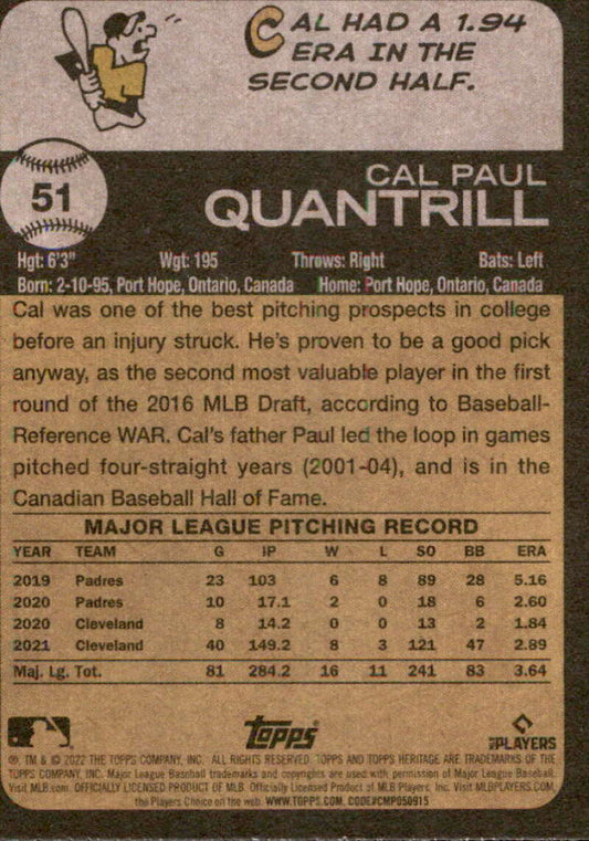 2022 Topps Heritage #51 Cal Quantrill NM-MT Guardians ID:41200