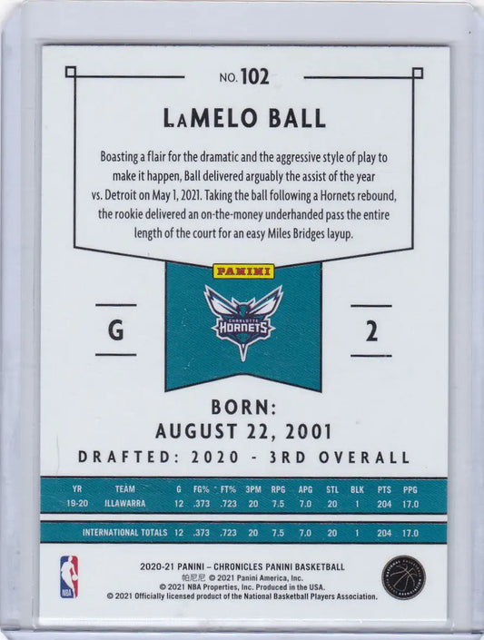 2020 CHRONICALS #102 LAMELO BALL- CHARLOTTE HORNETS