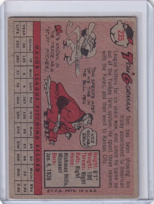 1958 Topps #235 Tom Gorman - Kansas City Athletics