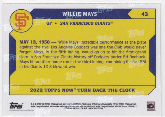 2022 TURN BACK THE CLOCK #43 WILLIE MAYS- SAN FRANCISCO GIANTS