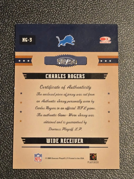 2005 Donruss Gridiron Gear #NG-3 Charles Rogers Next Generation Jerseys #/90
