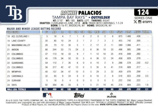 2025 Topps #124 Richie Palacios NM-MT Tampa Bay Rays Baseball Card
