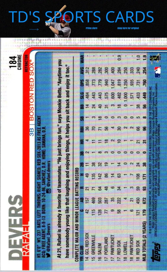 2019 Topps Chrome #184 Rafael Devers Pink Refractor