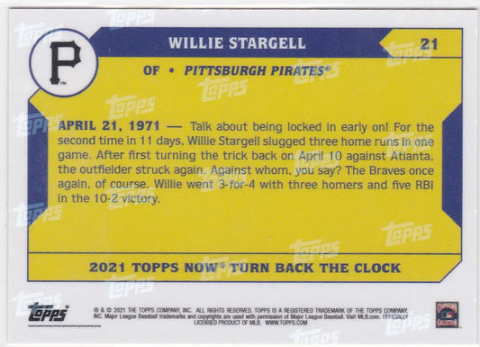 2021 TURN BACK THE CLOCK #21 WILLIE STARGELL- PITTSBURGH PIRATES