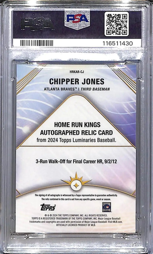 2024 Topps Luminaries Home Run Kings #HRKAR-CJ Chipper Jones PSA 10 GEM MINT MEM Auto 8/25 Atlanta Braves