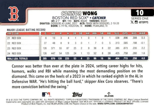 2025 Topps #10 Connor Wong NM-MT Boston Red Sox Baseball Card