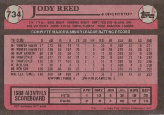 1989 Topps #734 Jody Reed NM-MT Boston Red Sox Baseball Card