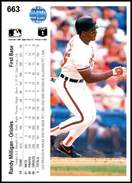 1990 Upper Deck #663 Randy Milligan NM-MT Baltimore Orioles Baseball Card