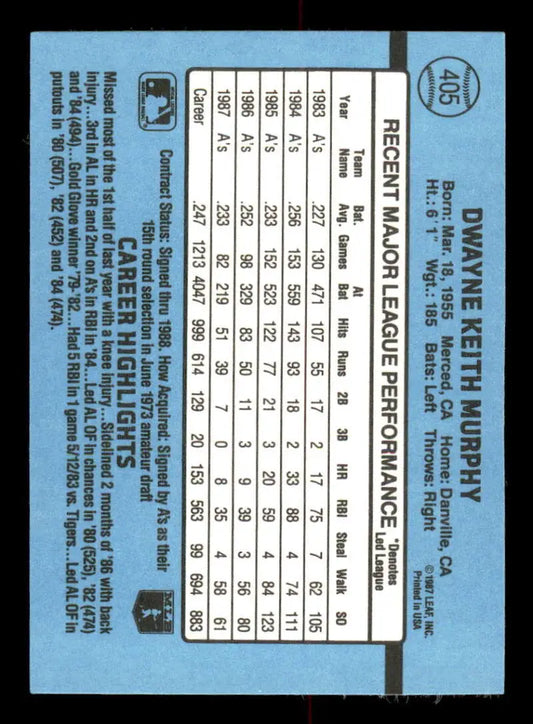 1988 Donruss #405 Dwayne Murphy EX Oakland Athletics Baseball Card