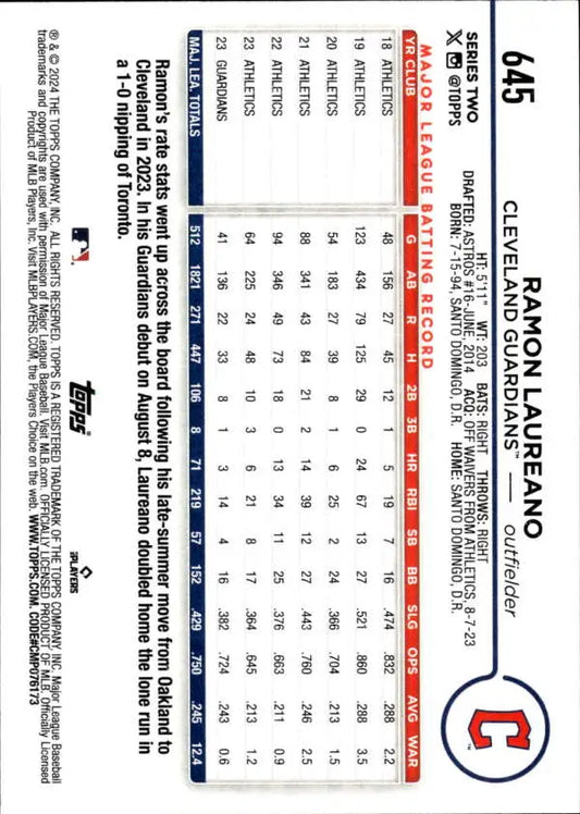 2024 Topps #645 Ramon Laureano NM-MT Cleveland Guardians Baseball Card