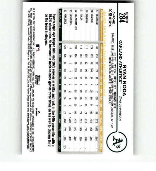 2024 Topps Chrome Refractor #284 Ryan Noda NM-MT Oakland Athletics Baseball Card