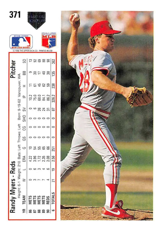1991 Upper Deck #371 Randy Myers NM-MT Cincinnati Reds Baseball Card